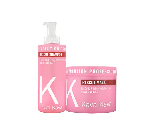 מארז שמפו ומסכה רסקיו לשיער מתולתל ומקורזל 1000 מ”ל Kava Kava – שיקום עמוק וברק מושלם