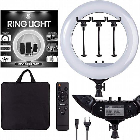 רינג לייט 21 אינץ’ (54 ס”מ) ArielPRO HQ-21 – תאורה מקצועית לצילום, לייב ואיפור
